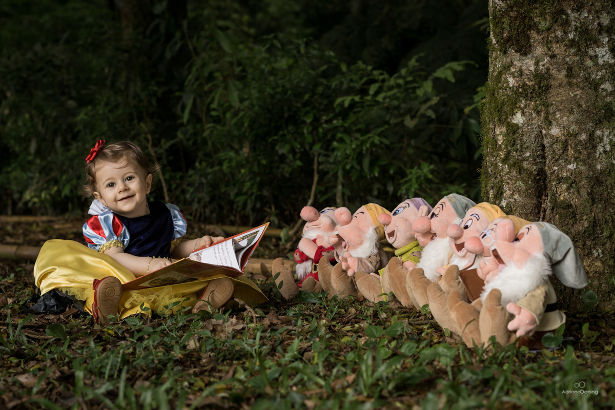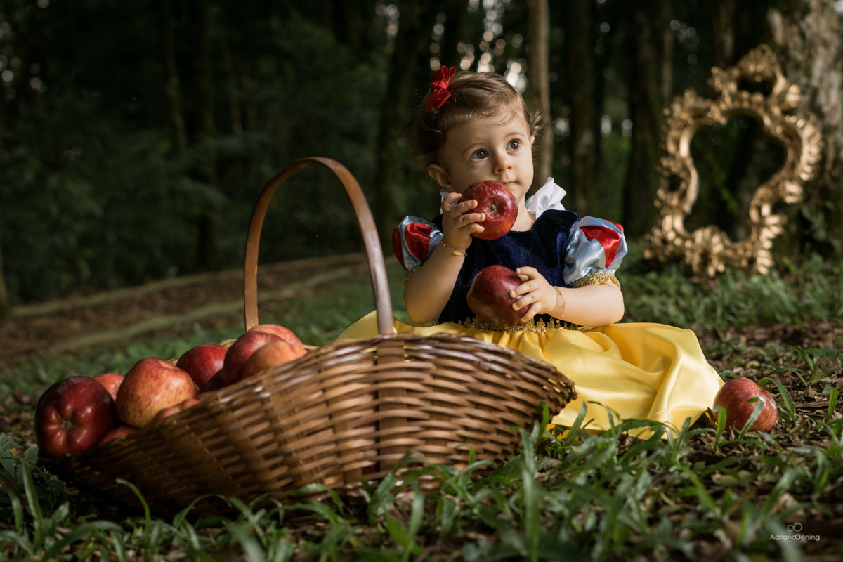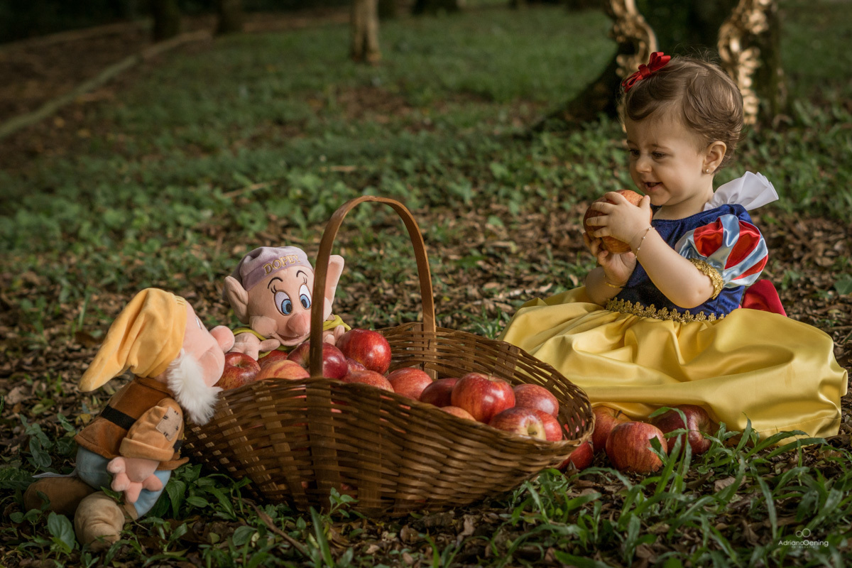 Lindo ensaio da Aurora com o tema de Branca de Neve!