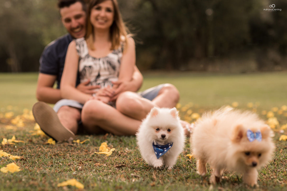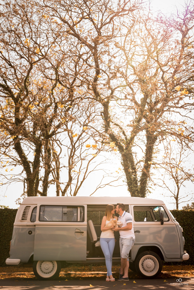 Além da Kombi, teve também os recém chegados mascotes do casal, Floquinho e Pipoca! Um casal de cãezinhos lindos, que não podiam ficar de fora desse momento. Eles roubaram a atenção por onde passávamos e deram um toque especial as fotos.